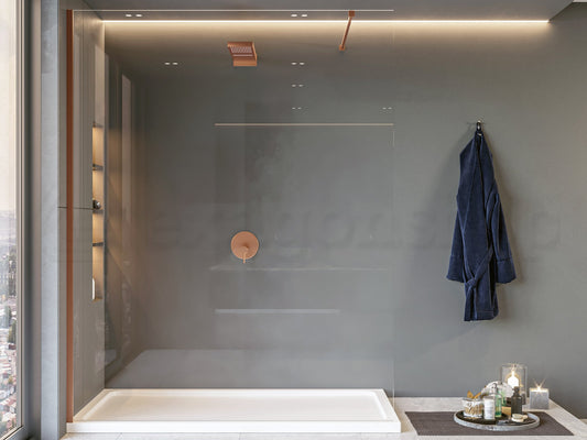 Walk in parete doccia fissa 120 cm H 200 spessore 8 mm in cristallo fluted scanalato profili oro rosa Genio