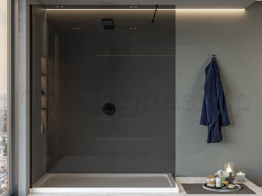 Walk in parete doccia fissa 100 cm H 200 spessore 8 mm in cristallo fume profili nero opaco Genio