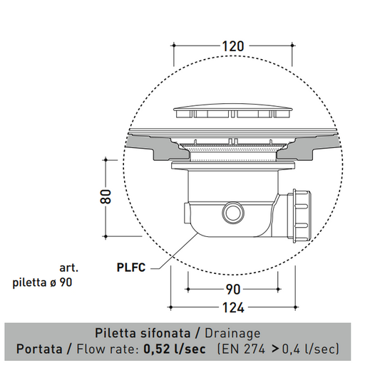 New line tks0 scarico piletta 90 mm per piatti doccia TK cromo