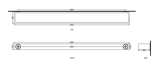 Cielo barra porta asciugamani 60 cm rettangolare in acciaio verniciato nero matt