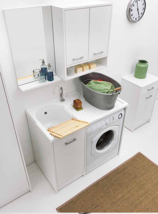 Colavene Domestica Mobile lavatoio Con Vasca Lavapanni A Sinistra In Abs 106x50x90 Cm Con Alloggio Lavatrice tela bianco