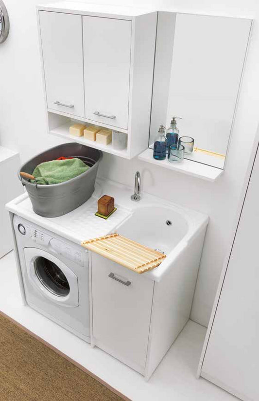 Colavene Domestica Mobile Con Vasca Lavapanni In Abs A Destra 106x60x90 Cm E Alloggio Lavatrice Bianco