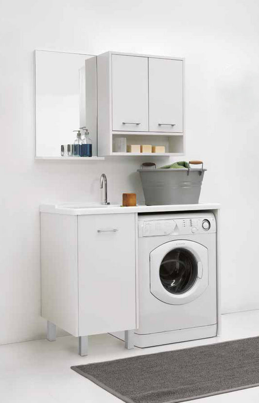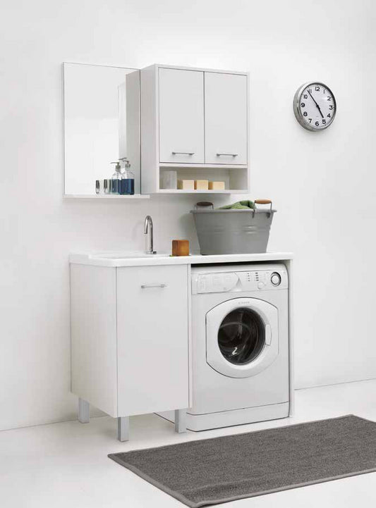 Colavene Domestica Mobile Con Vasca Lavapanni A Sinistra In Abs 106x50x90 Con Piedini E Alloggio Lavatrice Bianco