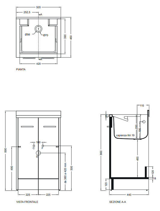 Colavene Domestica Mobile Lavatoio con vasca lavapanni e piedini Cm 50x45x86 Bianco