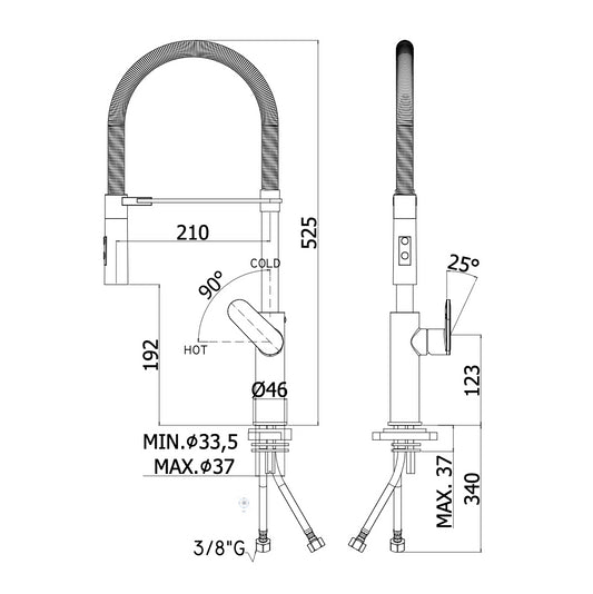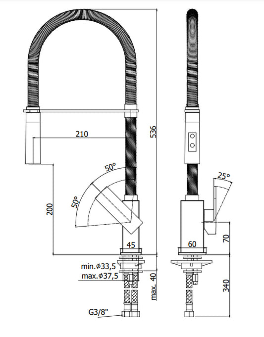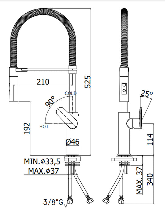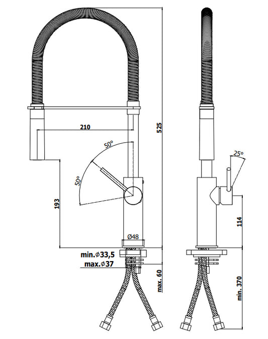 Paffoni Light Lig179nono Miscelatore Cucina Professional 2 Getti Abs Minimal Con Molla Nero Opaco