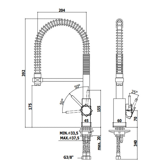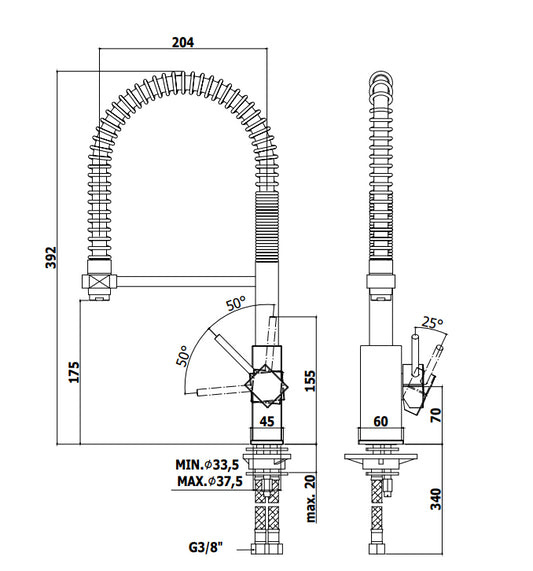 Paffoni Elle El179 Professional Miscelatore lavello monoforo con canna orientabile e doccia 2 getti Cromo