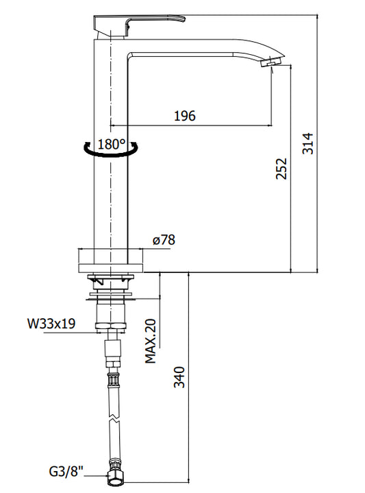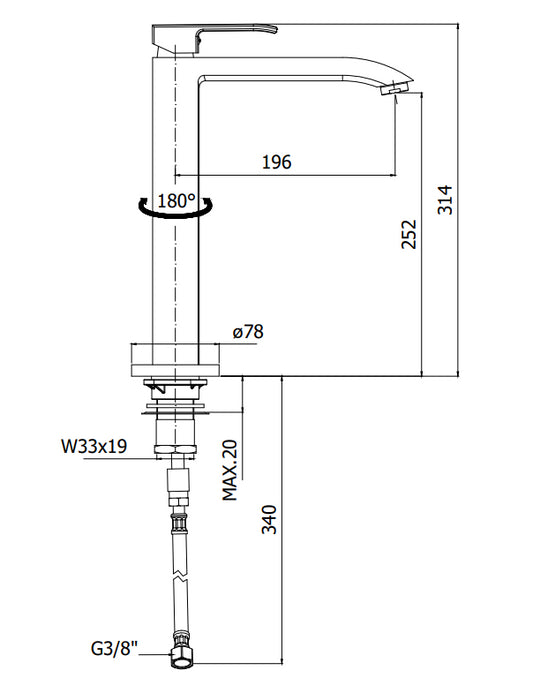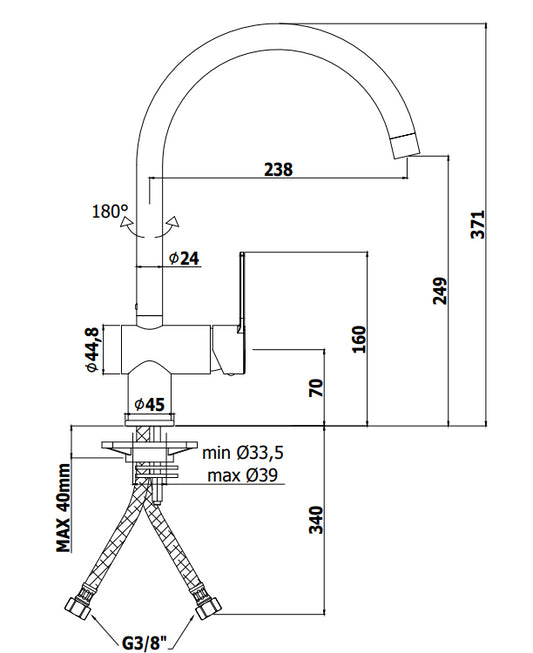 Paffoni Ringo Rin180 Miscelatore lavello monoforo con canna orientabile cromo