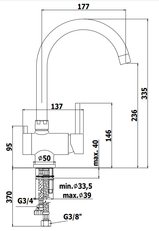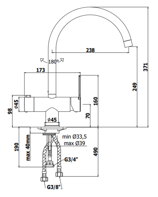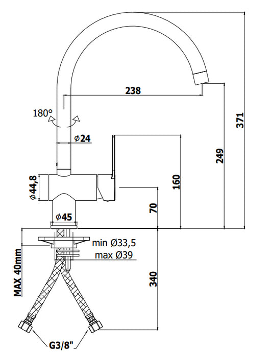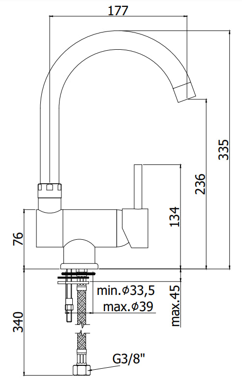 Paffoni Ringo Rin180 Miscelatore Lavello Cucina Monocomando Con Braccio Girevole Nero Opaco
