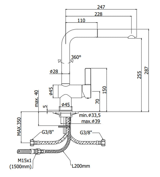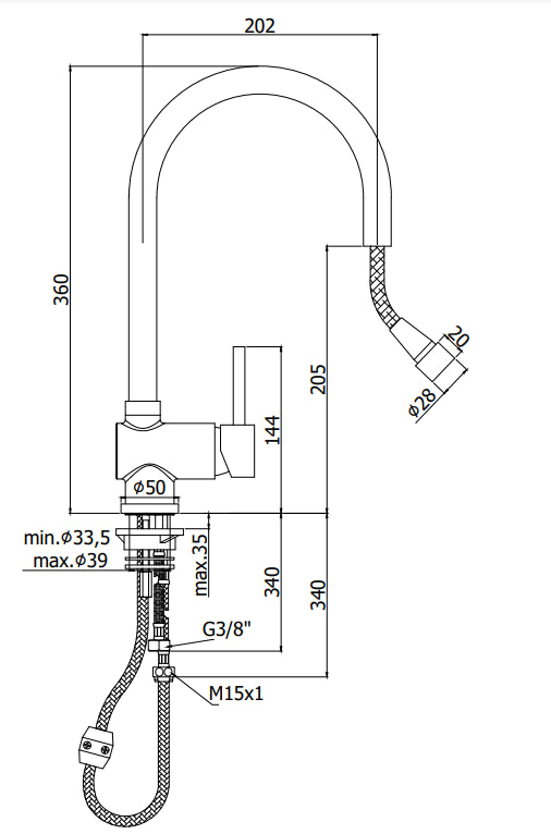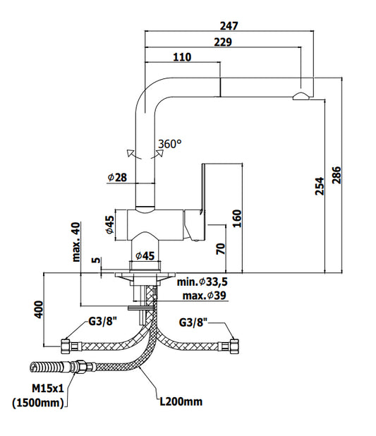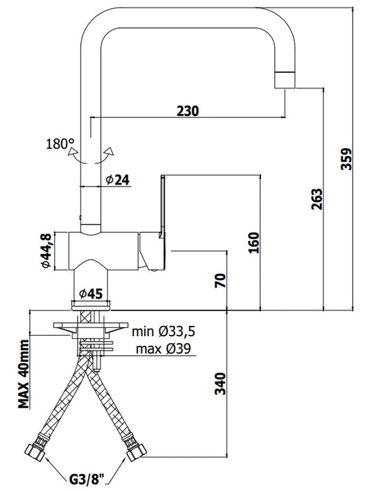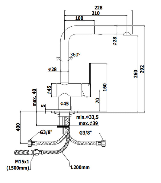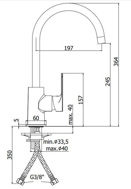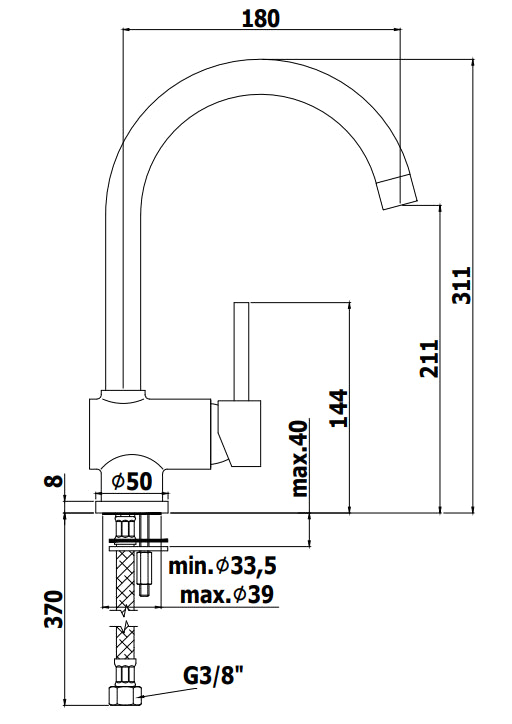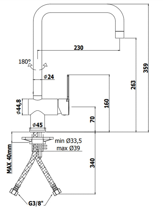 Paffoni Danubio Da092 Rubinetto Lavello Con Canna Orientabile 200 Mm Cromo