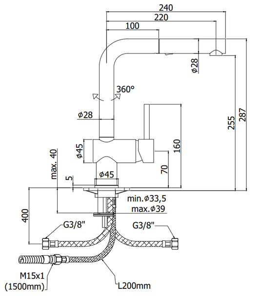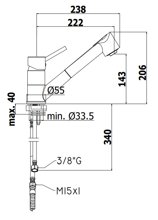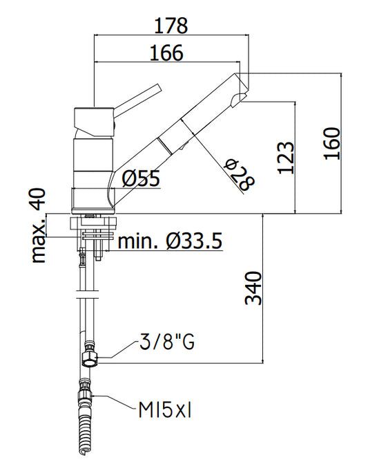 Paffoni Stick Sk185 Miscelatore lavello Monocomando con Doccetta Estraibile e flessibile 150 cm Cromo