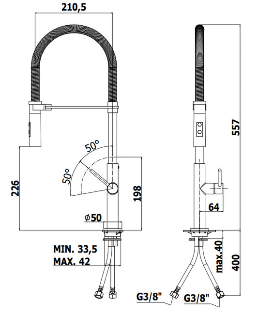 Paffoni Stick Sk178 Miscelatore Lavello Professionale Lux Con Braccio Erogazione Flessibile Cromo