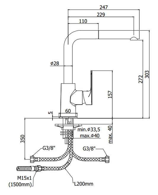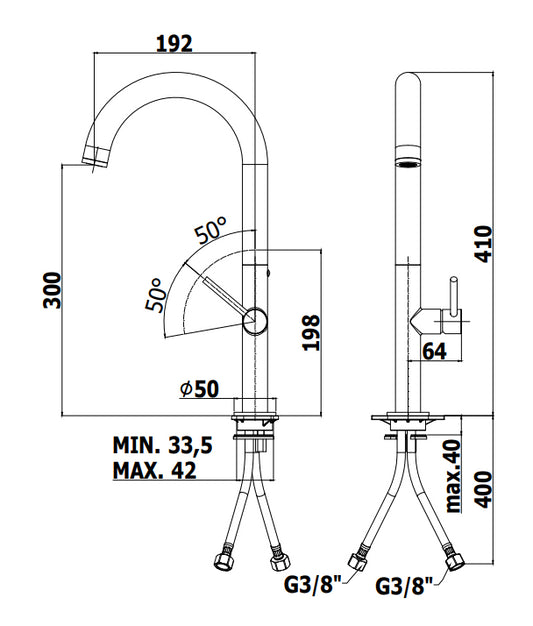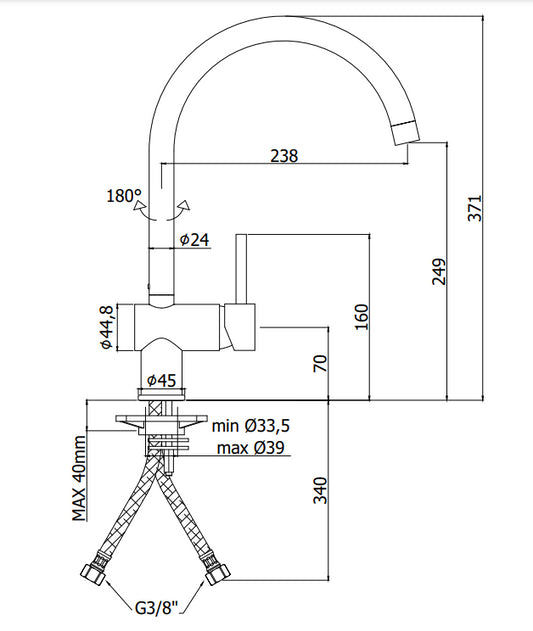 Paffoni Iris Irv091 Rubinetto lavello Con Canna Orientabile Cromo