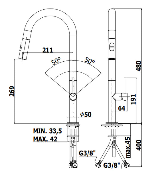 Paffoni Birillo Bi183 Miscelatore lavello doccia estraibile 2 getti monoforo e canna orientabile cromo