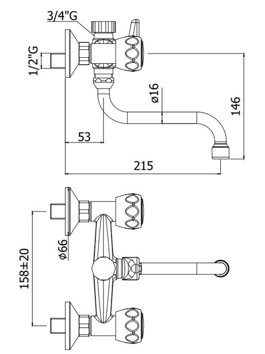 Paffoni Danubio Da169 Gruppo Lavello con attacco lavatrice Canna Orientabile 16 cm e Deviatore Cromo