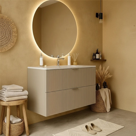 Mobile bagno cannettato 102x47 tortora opaco lavabo in ceramica Teramo