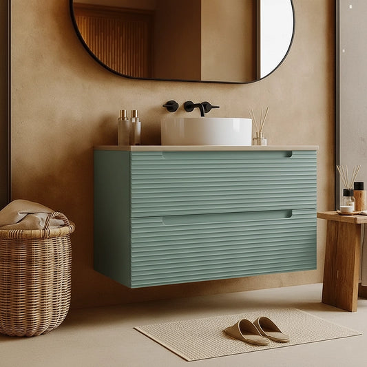 Mobile bagno tabacco verde opaco 120x50 Oasy un cassetto con top e lavabo rettangolare da appoggio