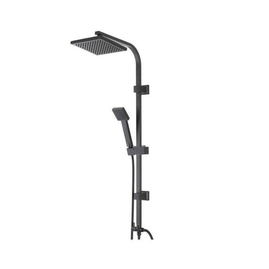 Colonna Doccia con soffione quadro saliscendi deviatore e doccetta con flessibile 150 cm in acciaio nero opaco Platinum