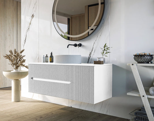 Mobile bagno 120x46 Urbino cannettato bianco opaco con anta e lavabo