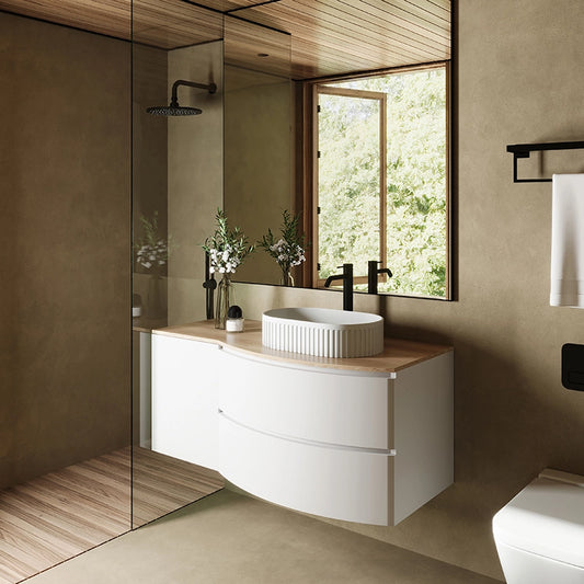 Mobile bagno 120x57 bianco opaco quercia Berna con lavabo in ceramica