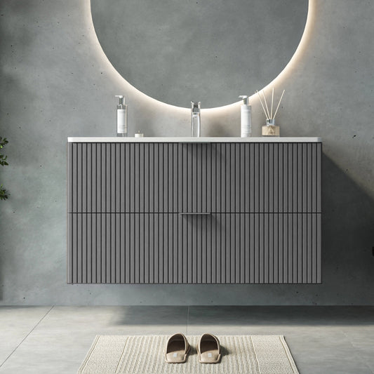 Mobile bagno cannettato 102x47 grigio opaco lavabo in ceramica Teramo