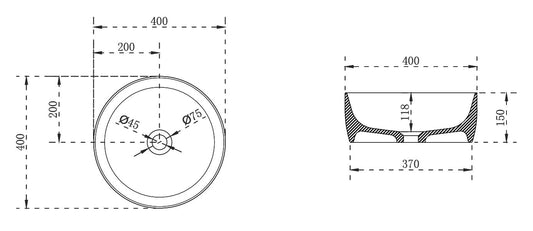 Lavabo 40 cm da appoggio Torino solid surface bianco opaco