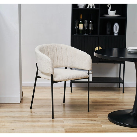 Sedia con braccioli in tessuto boucle imbottito bianco