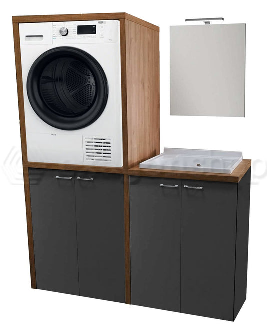 Mobile lavanderia porta lavatrice e asciugatrice con lavatoio e specchio noce grigio Adele