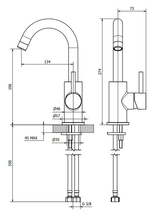 Jabil 35 Miscelatore lavabo leva laterale scarico click clack cromo