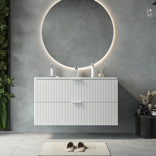 Mobile bagno bianco opaco 100x45 Praga due cassetti soft close con lavabo in ceramica