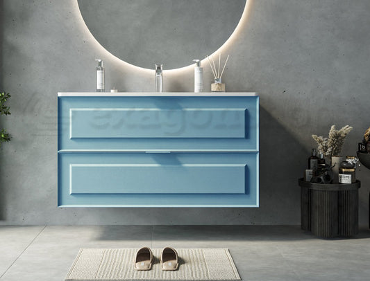 Mobile bagno sky blue 100x45 Praga due cassetti soft close con lavabo in ceramica