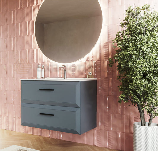 Mobile bagno sky blue 80x45 Praga due cassetti soft close con lavabo in ceramica