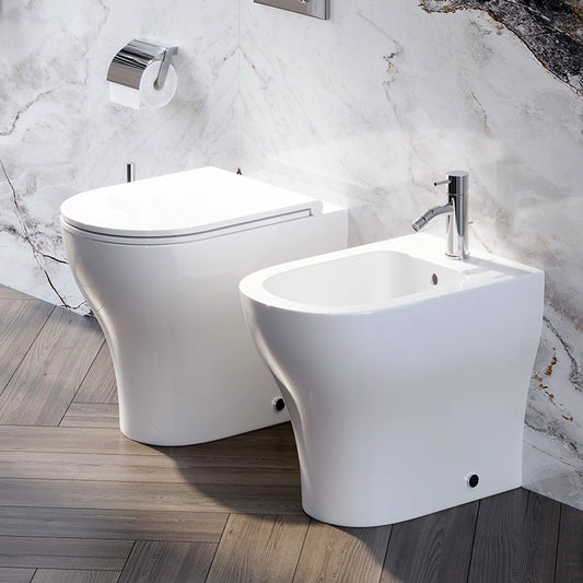 Coppia sanitari Touch a pavimento filo muro bianco lucido con sedile softclose