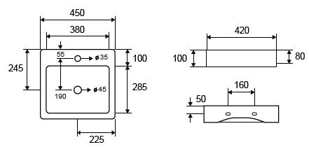 New Line B3 Lavabo lavamani 45x42 quadro Sospeso In Porcellana Bianca