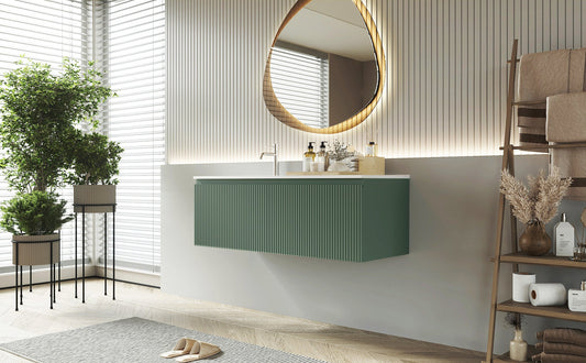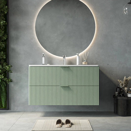 Mobile bagno cannettato 120X46 verde lavabo resina cassetti destro sinistra Pisa