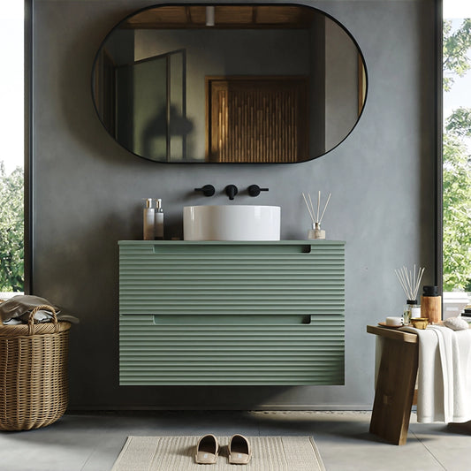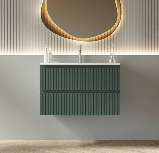 Mobile bagno cannettato 80X46 verde lavabo resina soft close Pisa