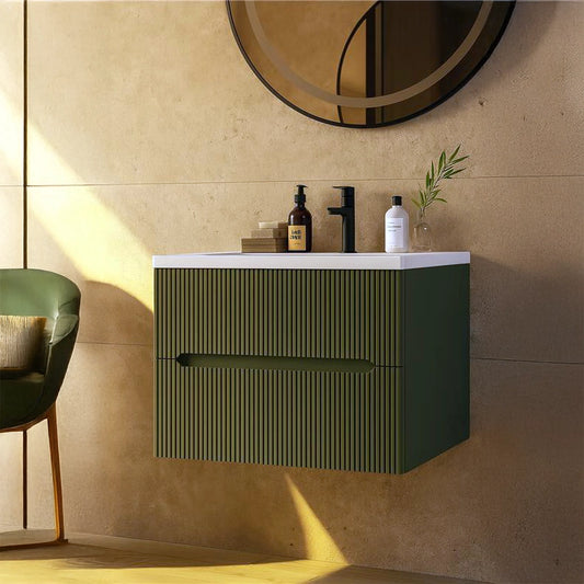 Mobile bagno verde muschio 70x46 cannettato Urbino con lavabo ceramica