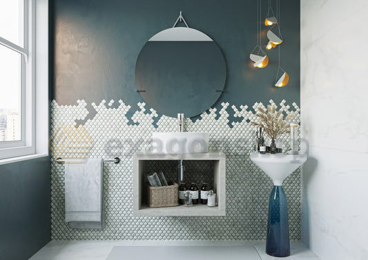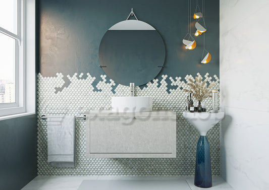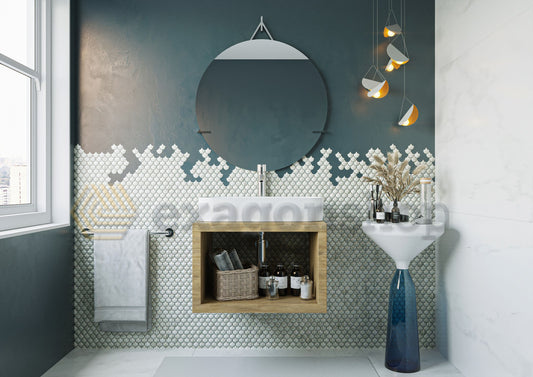 Mobile bagno grigio 90x50 Elsa top effetto cemento e lavabo tondo da appoggio