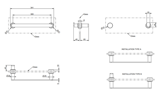 Maniglia e portasalvietta 30 cm per fissaggio su vetro cromo emporio 38911 gessi
