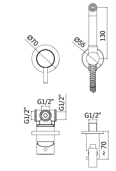 Neptune Idroscopino Idrogetto Quadro Con Flessibile Da 90 Cm Cromo