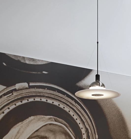 Flos Frisbi Lampada Sospesa A Luce Diretta/Diffusa/Riflessa Diffusore Opalino E Riflettore Cromo