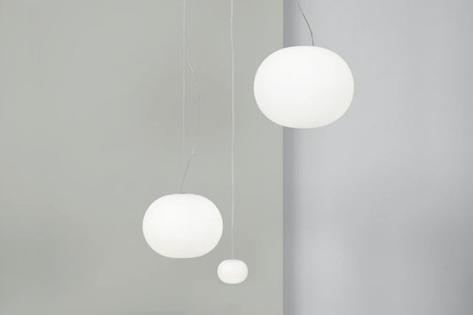 Flos Glo-Ball Suspension 2 Lampada a Sospensione 45 cm a luce diffusa in acciaio e vetro soffiato Bianco