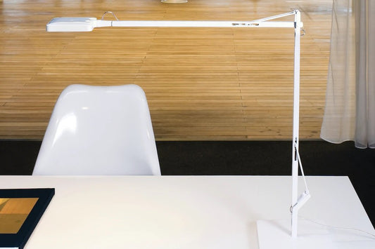 Flos Kelvin LED Lampada da tavolo orientabile Supporto scrivania (Cavo nascosto) Bianco lucido