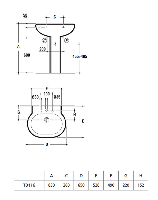 Ideal Standard Tesi T351801 Semicolonna Per Lavabo Bianco