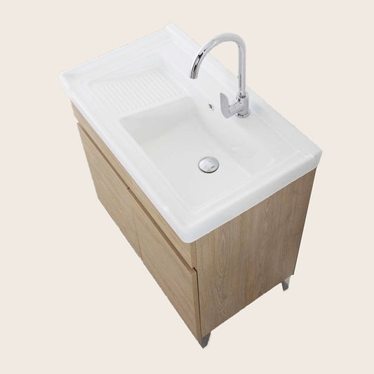 Mobile lavatoio 80x47 rovere con vasca in ceramica