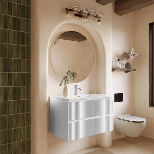 Mobile bagno bianco opaco 70x46 cannettato Urbino con lavabo in ceramica