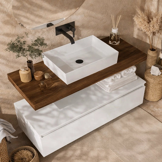 Mobile bagno 120x50 tabacco bianco opaco Oasy con top e lavabo appoggio