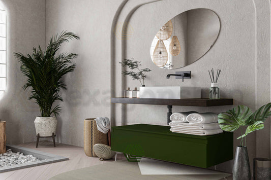 Mobile bagno tabacco verde opaco 120x50 Oasy con top e lavabo da appoggio