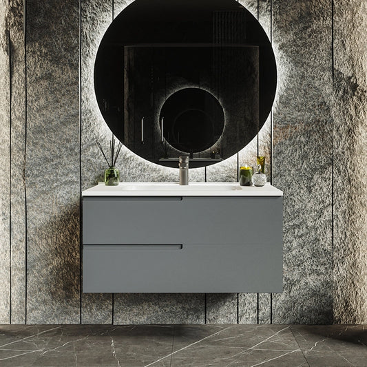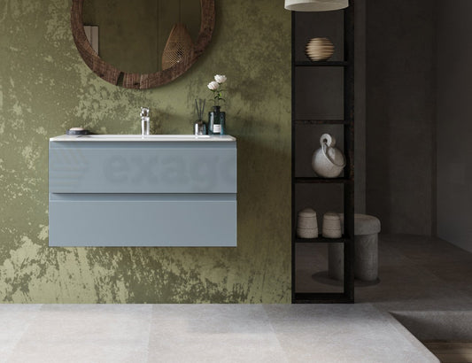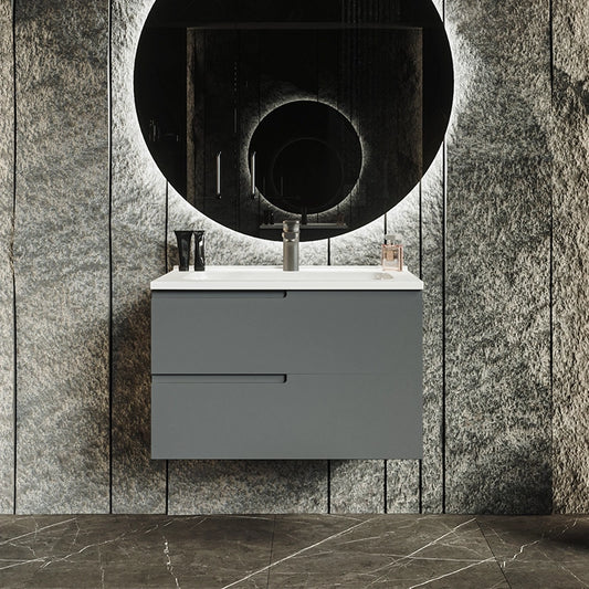 Mobile bagno Grigio opaco 90x46 Sorrento due cassetti con lavabo integrato in ceramica