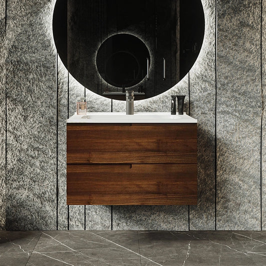 Mobile bagno noce 90x46 Sorrento maniglia sinistra e lavabo in ceramica