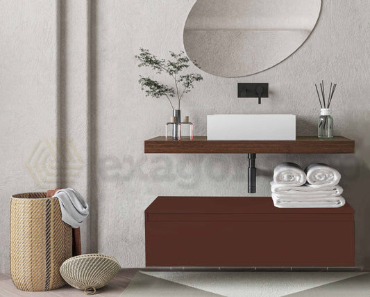 Mobile bagno tabacco creta Opaco 120x50 Oasy un cassetto con top e lavabo rettangolare da appoggio